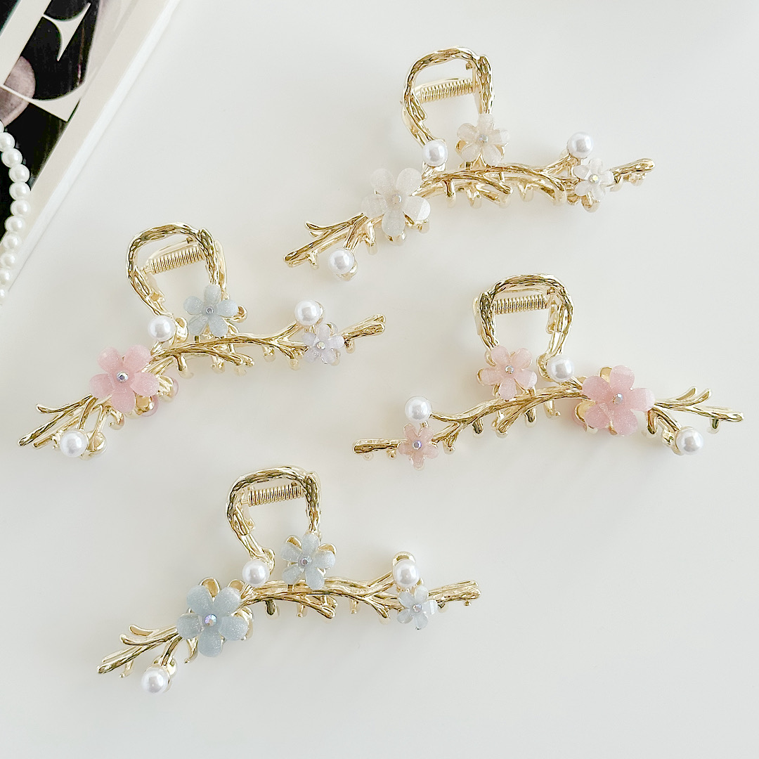کلیپس فلزی روبانی شکوفه کریستالی رنگی ZAYA